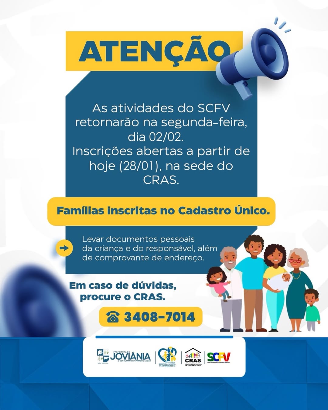 As atividades do SCFV retornarão na segunda-feira, dia 02/02.